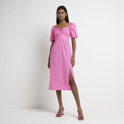 Pink Puff Sleeve Midi Dress River Island