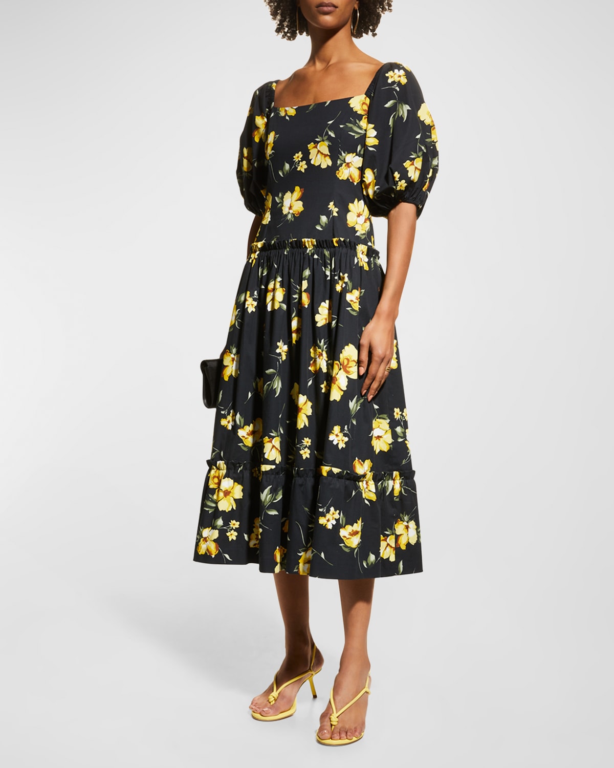 puff sleeve dress midi